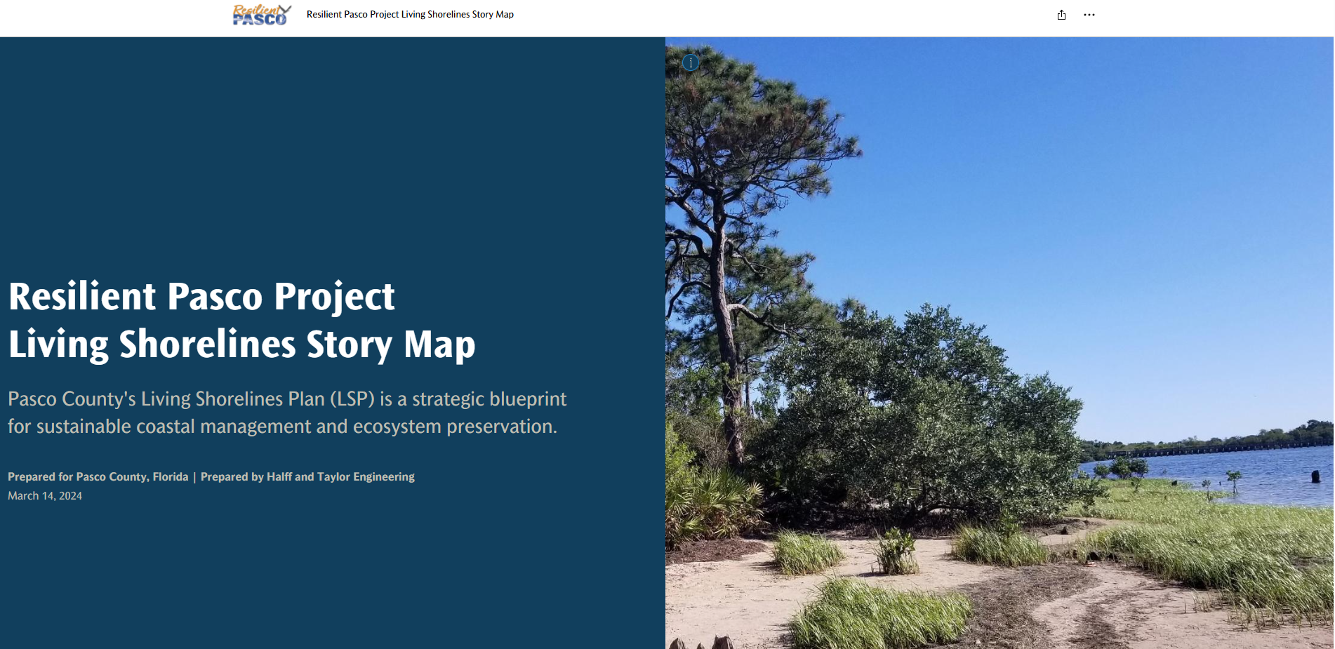 Pasco County, located along Florida’s Gulf Coast north of Tampa Bay, faces increasing vulnerabilities to coastal flooding, erosion, and sea level rise. To address these challenges, the County launched the Resilient Pasco Project, its first comprehensive effort to develop a long-term resilience and sustainability framework. During the project’s planning process, hurricanes Idalia, Debby, Helene, and Milton impacted the region, revealing the fragility of infrastructure and natural systems and highlighting the urgency of strategies that protect communities while building long-term resilience. Among the project’s three interlinked deliverables—a Risk and Vulnerability Assessment (R&VA), a Resilience and Sustainability Action Plan (RSAP), and a Living Shorelines Plan (LSP)—the LSP specifically advanced nature-based solutions for protecting several of the County’s coastal parks, shorelines, and associated infrastructure.