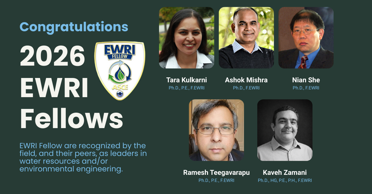 Join us in recognizing the outstanding professionals honored as EWRI Fellows for 2026. This prestigious distinction is awarded to individuals who have demonstrated exceptional leadership and contributions in the fields of water resources and environmental engineering.